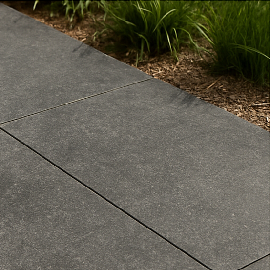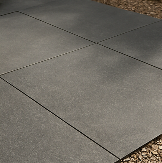 County Anthracite porcelain paving is a versatile and aesthetically pleasing solution for outdoor spaces. Crafted with precision, these black porcelain paving stones elevate any environment, adding a touch of sophistication and durability. The distinct County Anthracite colour palette and varied hues effortlessly blend with diverse design schemes, creating a timeless appeal. Suitable for a range of applications, from patios to interior floors, this black porcelain paving adapts seamlessly to its surroundings. These porcelain pavements have a minimum R11 slip rating and are enhanced with sawn edges and a textured surface; to prevent slips and falls. The 600X900 size further enhances its visual impact, making it an ideal choice for spaces of any scale. These black porcelain slabs are not just paving; they are a statement of refined taste, transforming spaces into captivating showcases of modern design.