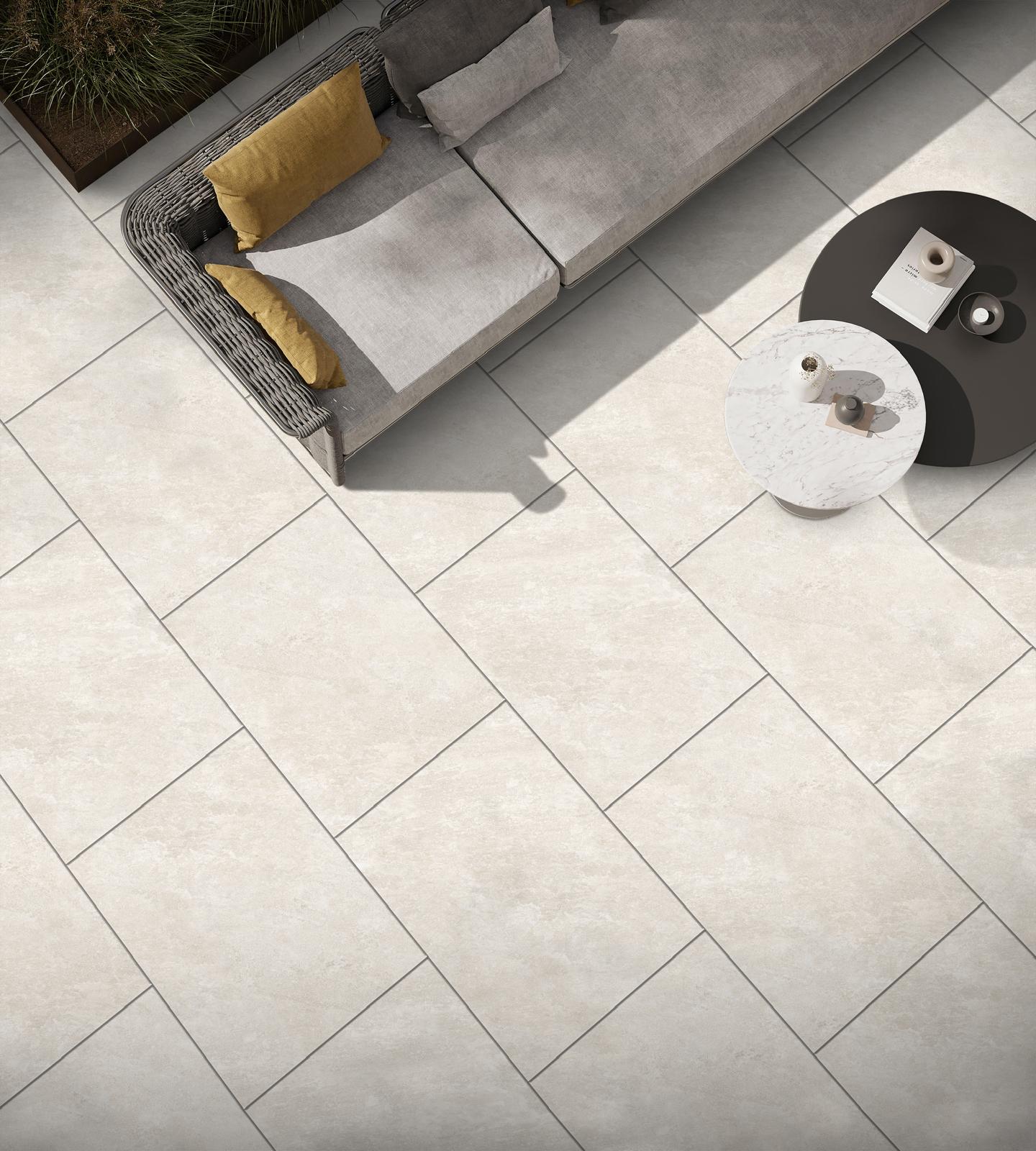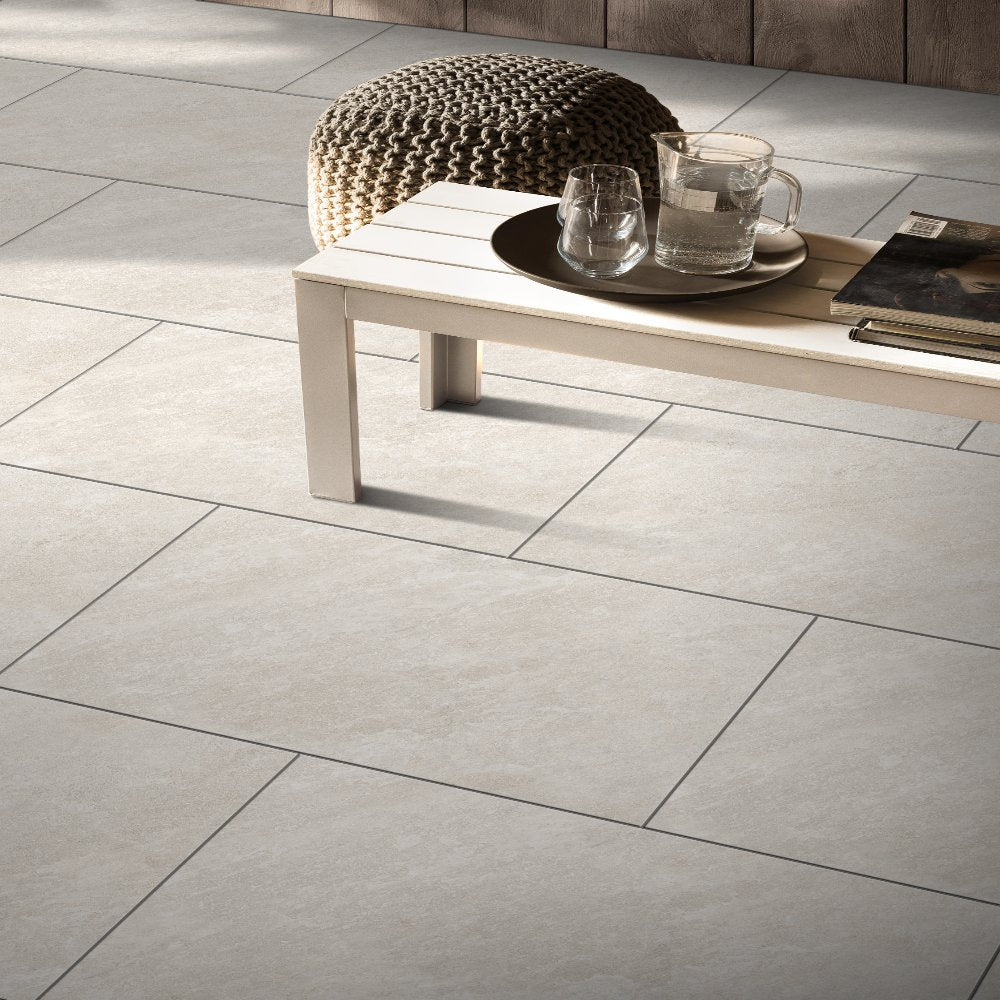 Quartz White Porcelain Paving Slabs 600x900 embody a practical and visually appealing choice for outdoor spaces, seamlessly marrying functionality with a clean, modern aesthetic. Quartz White Porcelain Paving from Stonemart is perfect for creating a reliable exterior floor, whether it’s for your garden, patio, or driveway. The textured surface and sharp, sawn edges are tough and durable. With an R11 anti-slip rating and 20mm thickness, these quartz white shade pavings are safe for your walkways. This white porcelain paving is an excellent option for external flooring as they are durable, easy to maintain, resistant to UV rays and frost, and easily cleaned with water. It makes a perfect option for homeowners who want to cover their old, weather-worn, cracked patios and existing wood decks.