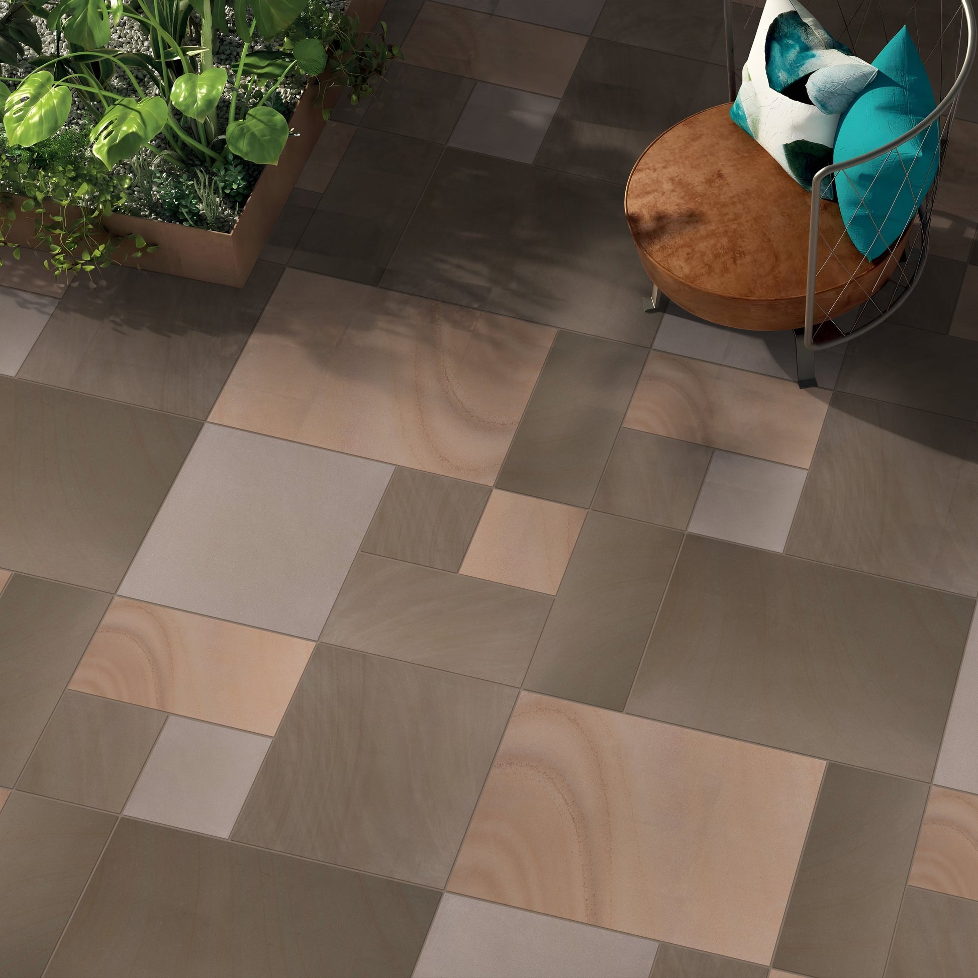 Rippon Buff Sandstone is a vibrant and eye-catching natural stone, renowned for its striking blend of golden yellows, soft creams, warm browns, and occasional pinkish streaks. The unique multi-colour variations in each slab create a lively, dynamic surface that brings warmth and charm to any outdoor setting. Its naturally riven texture enhances grip underfoot, making it ideal for patios, pathways, terraces, and pool surrounds.